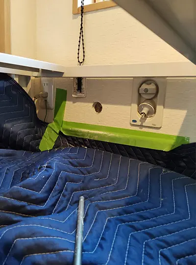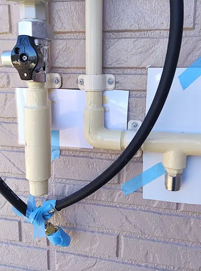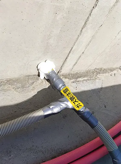 工事をするガス管にキャンパスを巻いて汚れないように、そして水やゴミが入らないようにテープ等で保護しています。