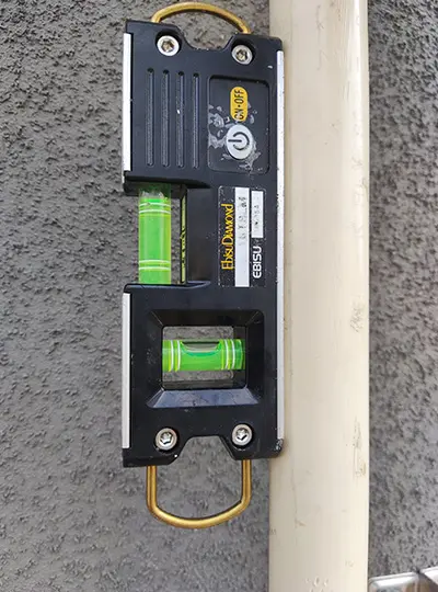 水平器を使って綺麗に仕上がる様に配管工事します。