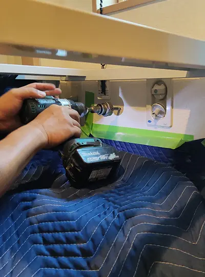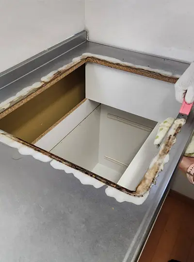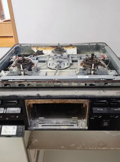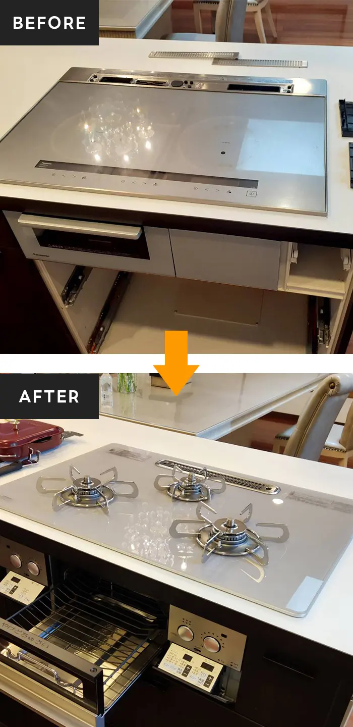 コンロの入れ替時も丁寧に取り外して掃除をしてから取り付けします。